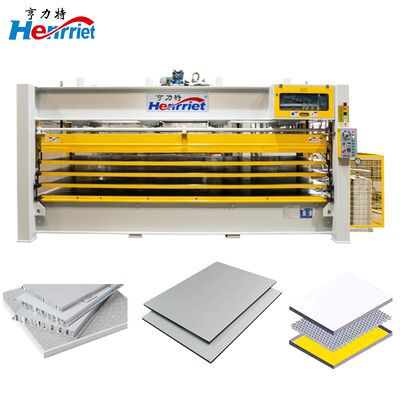 The 4-layer hot press represents a significant advancement in industrial composite processing, utilizing precisely controlled heat and pressure to simultaneously bond and cure multiple material layers. Its core structure incorporates four independently controlled heating platens—arranged in upper, mid-upper, mid-lower, and lower positions—creating four isolated pressing chambers. This configuration enables the simultaneous processing of four panels within a single operational cycle. A synchronized multi-cylinder hydraulic system drives the movable beams, applying consistent pressure across all layers while maintaining uniform force distribution. This design prevents overloading or deformation, ensuring dimensional stability across products. The machine excels in continuous large-scale production of laminated surfaces such as melamine-faced boards, veneered MDF, high-strength multi-ply panels, and customized cabinet and wardrobe components.