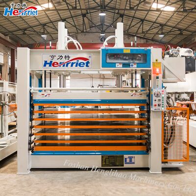 The equipment adopts an eight layer stacked three-dimensional structure, with eight independent heating working layers, which can simultaneously process eight layers of large panel materials, achieving a geometric level increase in production capacity under the same equipment footprint. The hot press plate is made of high-quality carbon solid steel plate processed by deep hole drilling technology, with high precision, high strength, durability, fast heating speed, uniform thermal conductivity, and low thermal energy consumption. The heating system is carefully segmented, with low energy consumption, uniform thermal conductivity, and adjustable temperature; The main hydraulic components of the hydraulic system are imported parts with adjustable pressure; The oil cylinder is made by precision CNC machining and adopts imported oil seals, with no oil leakage phenomenon. The fuselage adopts a high-strength steel plate welded structure, which has undergone strict vibration aging treatment, stable and firm, with minimal deformation, ensuring that the fuselage does not deform or fatigue under long-term high temperature and high pressure conditions.