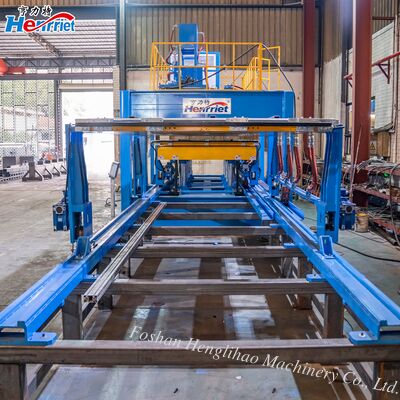 The dual-station movable shuttle table hot press represents a fully integrated production platform that combines a heavy-duty hot press with a synchronized dual-station material handling system. Its comprehensive architecture comprises the main press structure, two independently movable shuttle tables, a hydraulic lifting mechanism, integrated conveying equipment, and a centralized control network. The system operates on an innovative dual-workstation configuration where the overall workspace is divided into two distinct material preparation zones alongside a central pressing area. Two independently controlled shuttle tables alternate between the preparation zones and the pressing station, enabling a continuous "prepare one, press one" operational rhythm. While one table undergoes hot pressing cycles within the main press, operators can simultaneously load and unload materials at the adjacent preparation station. Upon completion of the pressing cycle, the tables automatically exchange positions, effectively eliminating the idle waiting periods inherent to conventional single-station equipment configurations.