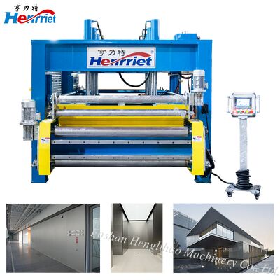 The automatic conveyor line for hot press systems represents a fully synchronized manufacturing solution—seamlessly blending the core pressing unit with an intelligent material transport system. This integrated production cell is composed of a robust hot press frame, precision feeding and discharge conveyors, a hydraulic elevation mechanism, and a centralized electrical control platform. Operating under a streamlined “single-in, single-out” workflow, it features hydraulically adjustable roller platforms at both ends, enabling smooth insertion of pre-assembled panels into the pressing chamber and effortless ejection of finished products directly to downstream stations.